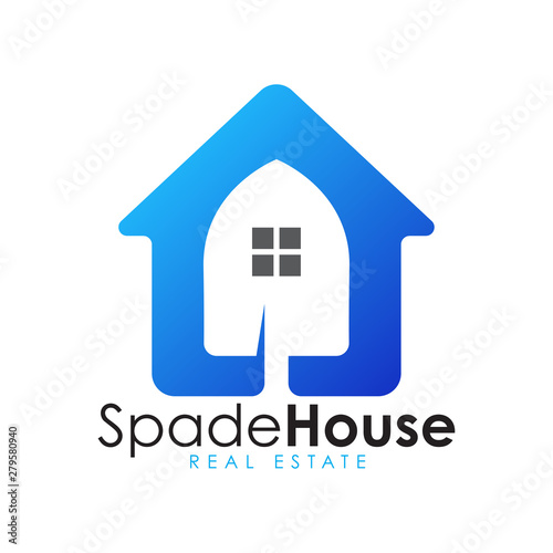 Modern minimalist spade or shovel house logo design.