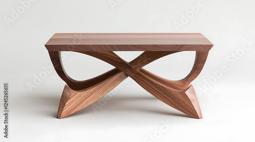 modern minimalist wooden coffee table with unique infinity design, handcrafted from rich wood, perfect for contemporary living spaces
