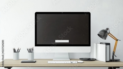 Modern Minimalist Workspace with Starry Night Computer Screen