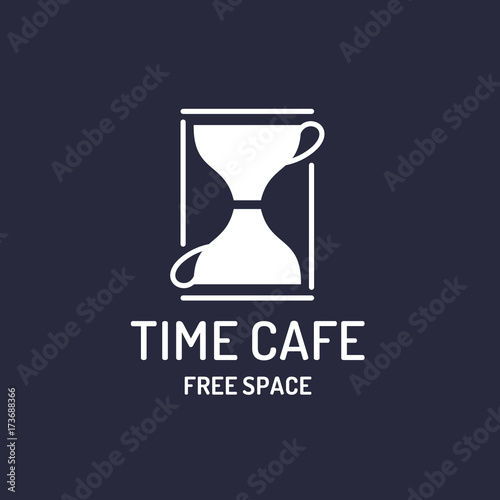 Modern, minimalistic logo for a time cafe and free space for guests. Label for Billboard.