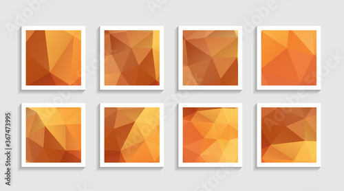 Modern mosaic low poly artwork poster set with simple shape and figure. Abstract minimalist pattern design style for web, banner, business presentation, branding package, fabric print, wallpaper.