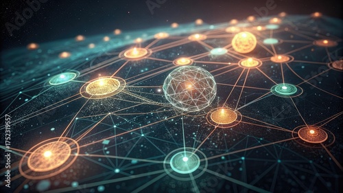 Modern network connection, data and technology global internet concept with glowing nodes and lines to showcase connectivity, perfect for a tech brand