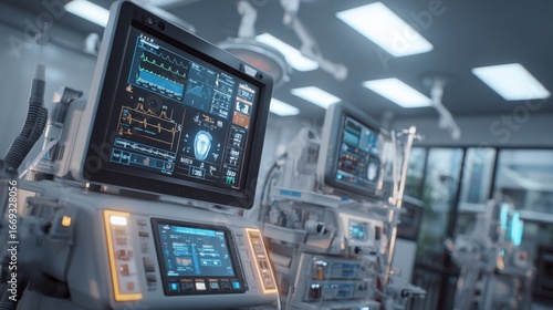 Modern neurosurgery operating room with advanced medical equipment and high-tech surgical devices for brain surgery procedures