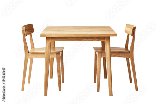 Modern Oak Wood Dining Table and Chairs Set isolated on transparent white background, clipping path