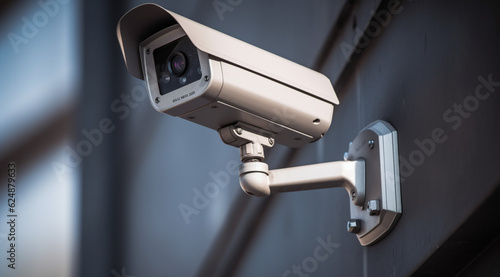 Modern of CCTV camera for monitoring surveillance and security on the wall with car park background