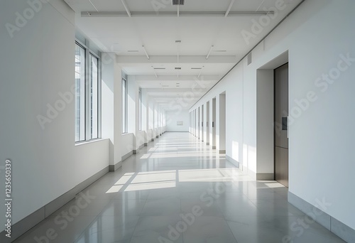 Modern Office Corridor With Bright Lighting And Clean Design