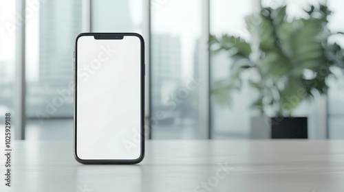 Modern Office Desk with Smartphone, Sleek Design and Illuminated Screen, High Resolution 8K Photo Realistic Image