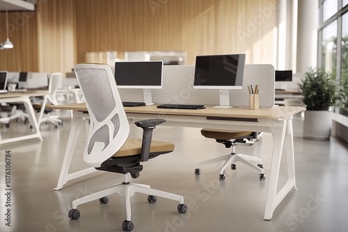 Modern Office Interior Design: White Desk and Ergonomic Chairs