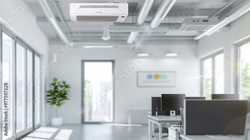 Modern Office Interior with Ceiling Mounted Air Conditioner