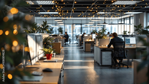 Modern Office Space with Holiday Cheer and Natural Light