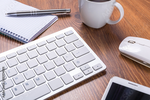 Modern office workplace with a cup of coffee