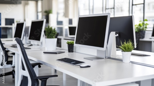 Modern Office Workspace Sleek Computers Minimalist Design Plants