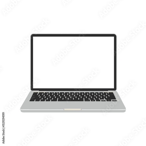"Modern Open Laptop with Blank White Screen Isolated on White Background"