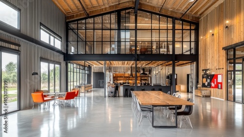 Modern open plan workspace with mezzanine