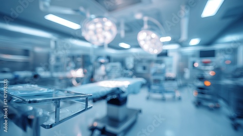 Modern operating room with bright lights and surgical equipment ready for procedures