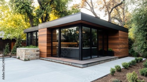 Modern Outdoor Kitchen Renovation with Shera Wood Siding and Natural Elements