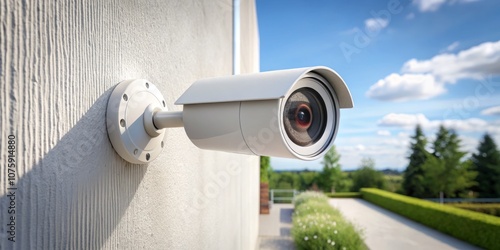 Modern Outdoor Security Camera on White Wall for Enhanced Surveillance and Safety in Residential and Commercial Properties