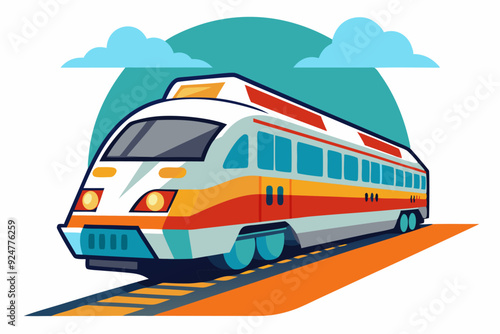 Modern Passenger Train on Tracks with Clouds in the Background
