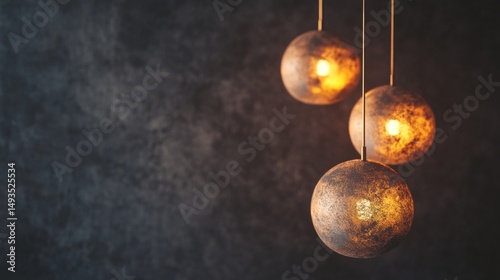 Modern pendant lights glowing in dark interior background with moody minimalist atmosphere