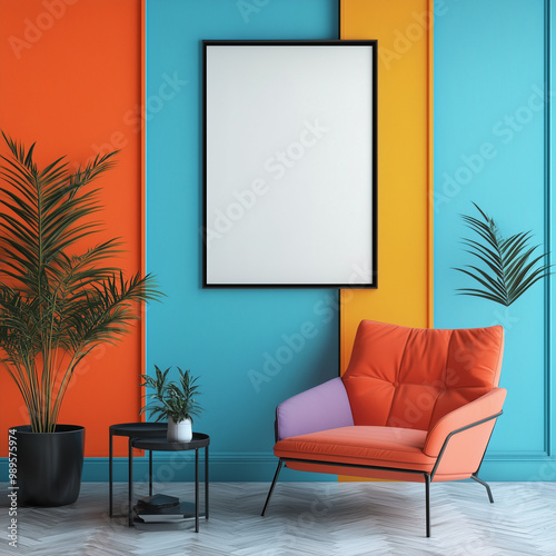 Modern Poster Mockup Scene | Realistic Frame Display in Minimalist Interior, Contemporary Wall Art Showcase