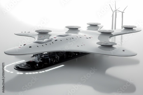 Modern Power Plant with Wind Turbines and Clean Design