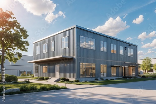 Modern Prefabricated Metal Industrial Building Design in a Sunny Setting