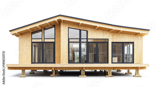 Modern prefabricated wooden house with large windows
