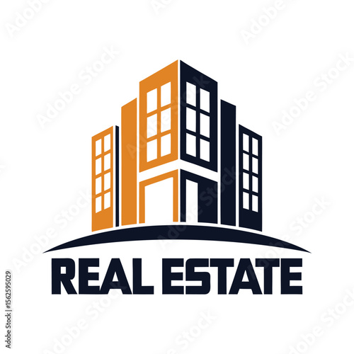 Modern Real Estate Lettermark Logo Design with Building Silhouette, Commercial Property Branding, Architecture Monogram Emblem Vector Illustration