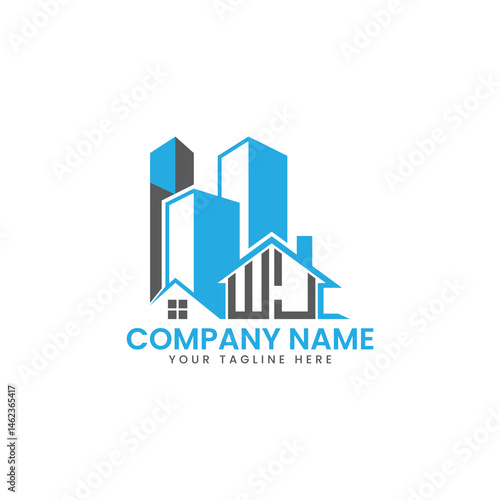 Modern Real Estate Logo Design – Blue Building Icon Template for Construction or Property Business