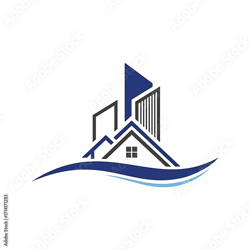 Modern Real Estate Logo Design with Skyline and Wave Accents