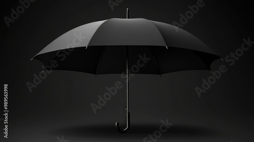 Modern Realistic Mockup of Black Automatic Umbrella with Metal Handle for Rain Protection in Spring, Autumn, or Monsoon Season