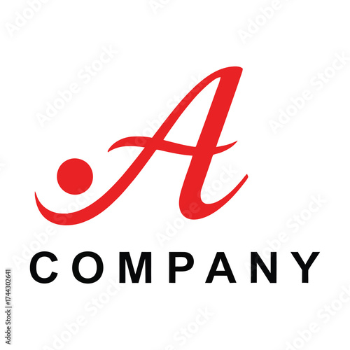 Modern red 'a' letter company logo with dot and text vector