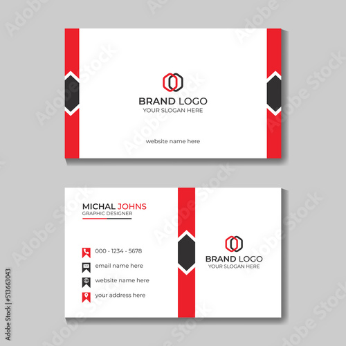 Modern Red and White Business Card Design. Professional Business Card Template. Flat Design Abstract Creative