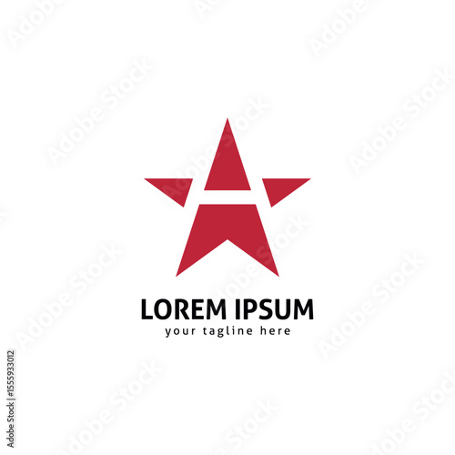 Modern Red Star with Letter A Cutout, Minimalist Geometric Logo Design.
