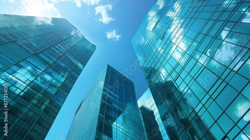 Modern Reflective Skyscrapers, Business Office Building Urban Architecture