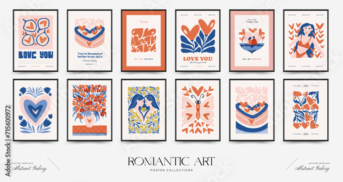 Modern Romantic, Valentine's day vertical flyer or poster template. Love hand drawn trendy illustration.