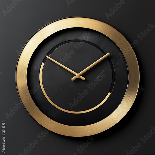 Modern Round Clock with Gold Rim and Dark Face Against Grey Backdrop Minimalist Timepiece