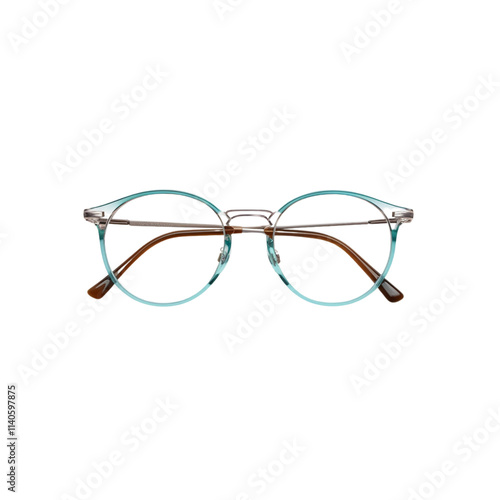 Modern Round Eyeglasses with Silver and Aqua Blue Frame