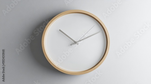 Modern Round Wall Clock Hanging on a Grey Wall.