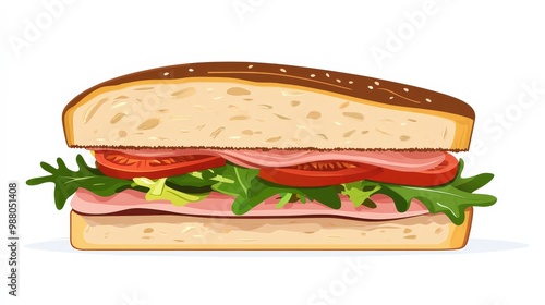 Modern Scandinavian Sandwich Vector Illustration with Tomatoes, Salad, and Ham on Clean Background