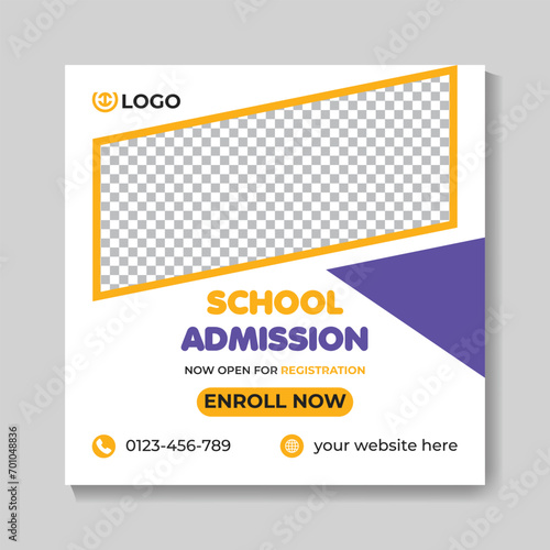 Modern school admission education social media post design creative back to school web banner template