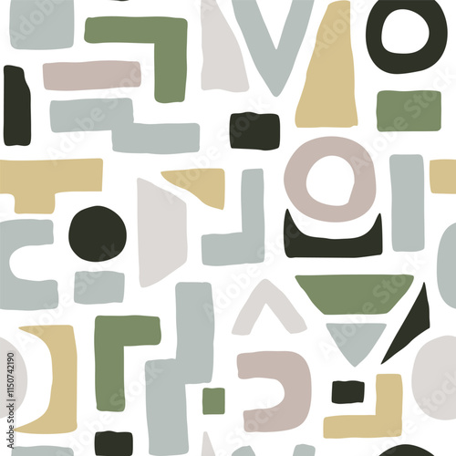 Modern seamless pattern with abstract geometric cutout shapes. Fashionable artistic composition template in Matisse style. Vector illustration print for fabric, textile, wallpaper, cover, paper.