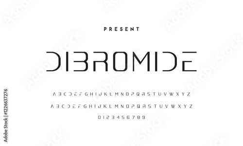 Modern serif alphabet design with uppercase, lowercase, numbers and symbol