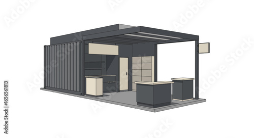 Modern shipping container transformed into stylish pop-up shop, ready for branding and creative retail design