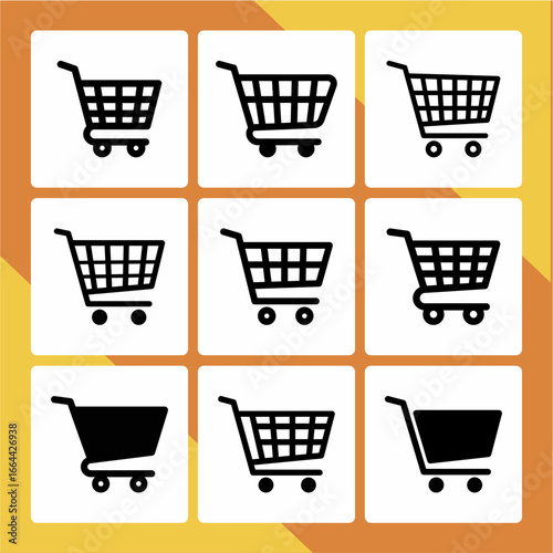 Modern shopping cart e-commerce icon vector representing online shopping, digital marketplace, and retail store transactions.