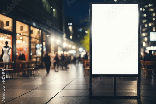 Modern shopping mall offers blank vertical poster for personalized content