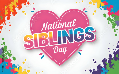 Modern Siblings Day Celebration with Colorful Paint Splatters and Heart Outline