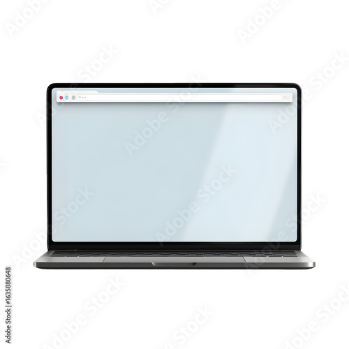 Modern silver laptop computer with a blank screen isolated on transparent background