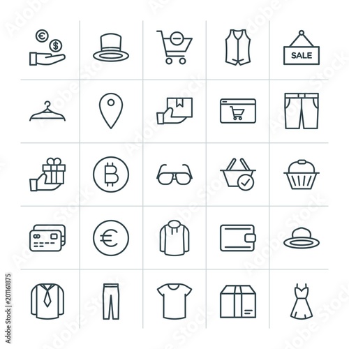 Modern Simple Set of clothes, shopping Vector outline Icons. ..Contains such Icons as market, hat, young, wallet, wear, clothing, line and more on white background. Fully Editable. Pixel Perfect