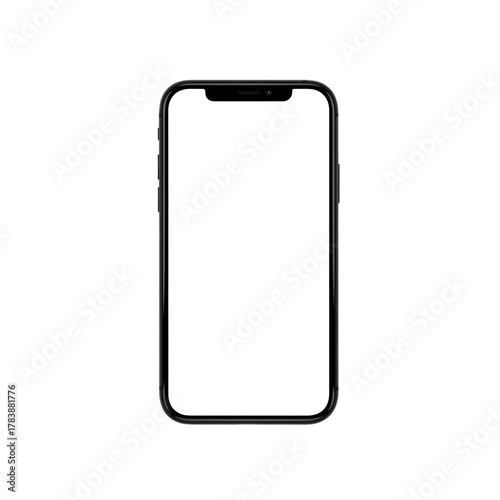 Modern sleek black smartphone with a blank screen isolated on transparent background